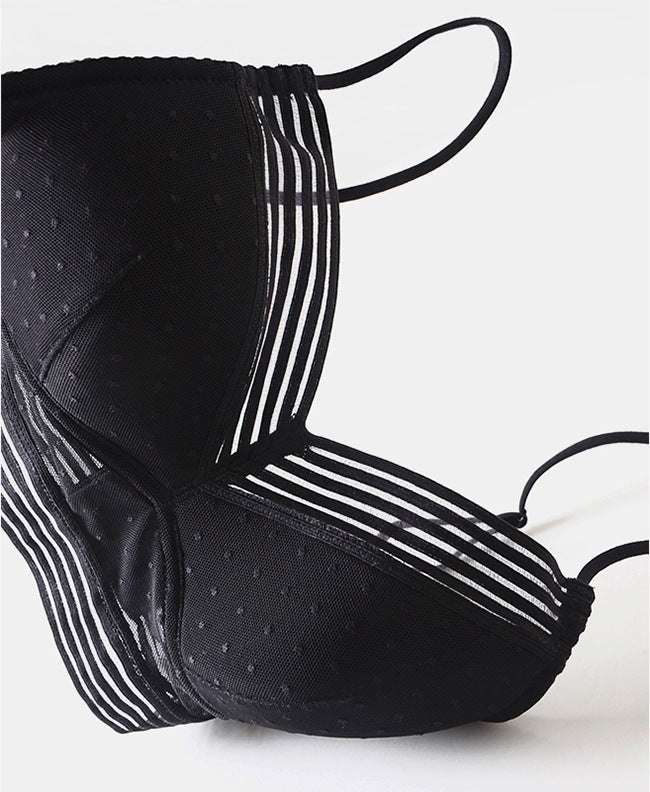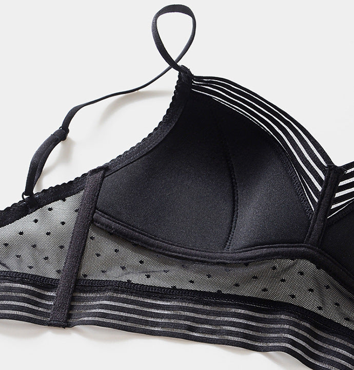 The unlined wire-free cups provides comfortable breast lift against sagging.